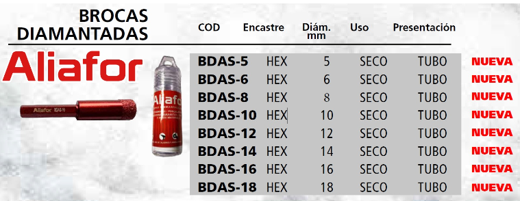 DESCRIPCIÓN: BDAS – Broca Diamantada Aliafor en Seco